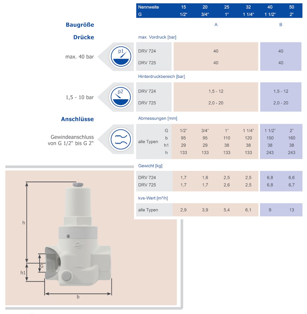 Druckminderer und verfügen über eine Vordruckkompensation. Die Kartuschenkonstruktion erlaubt einen einfachen Austausch der Innenteile.