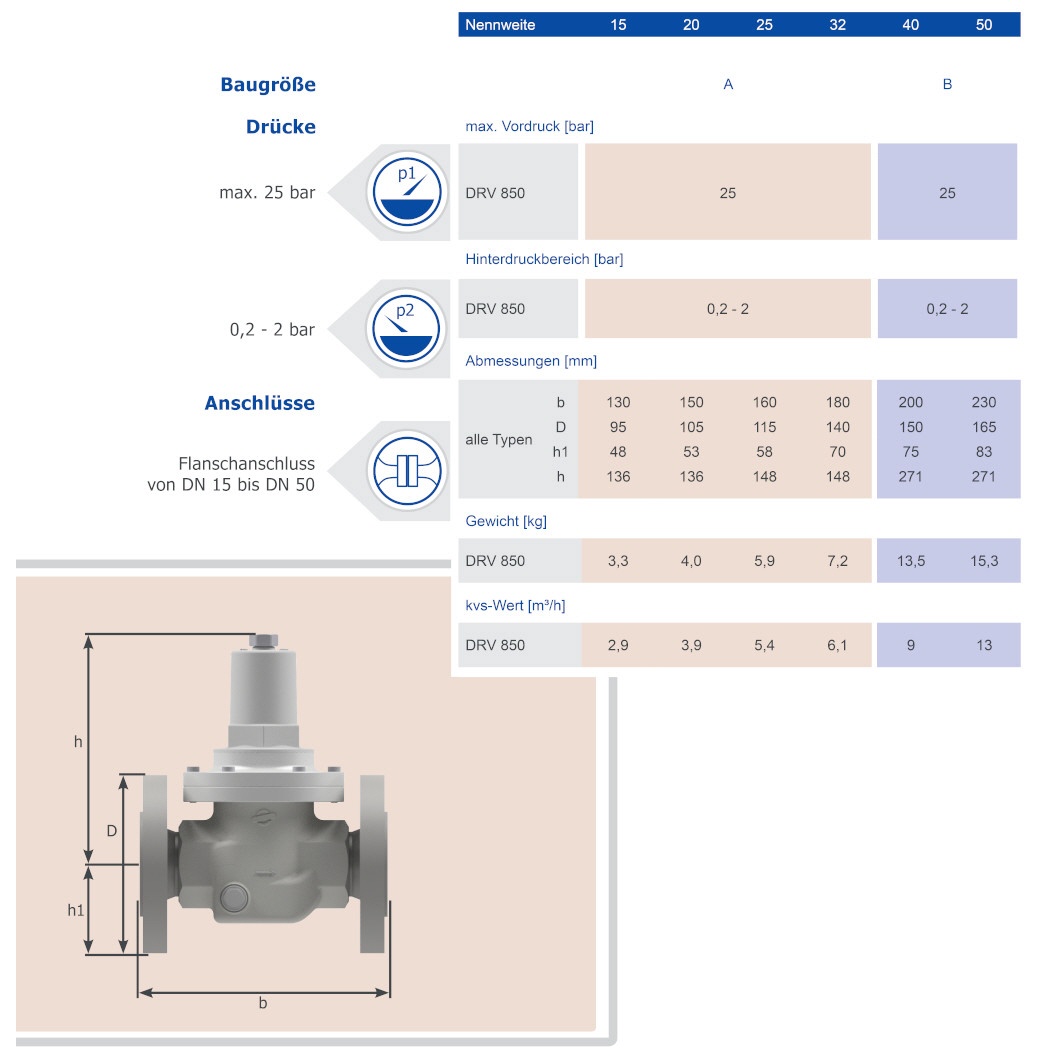 Druckminderer und verfügen über eine Vordruckkompensation. Die Kartuschenkonstruktion erlaubt einen einfachen Austausch der Innenteile. Alle Baugrößen sind mit Flanschen nach DIN, ANSI oder JIS lieferbar.