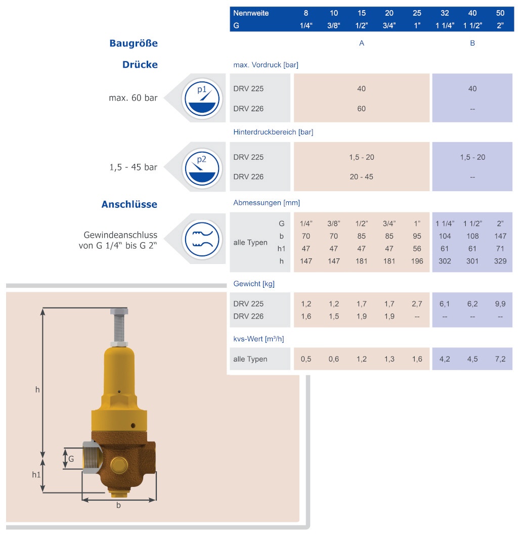 Druckminderer der Baureihe sind kolbengesteuerte, federbelastete