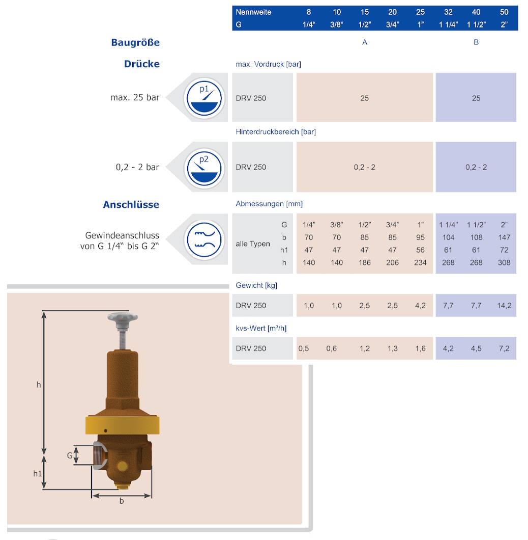 Druckminderer. Die Baureihe verfügt über eine hohe