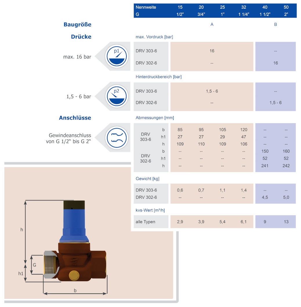 Druckminderer und verfügen über eine Vordruckkompensation. Die Kartuschenkonstruktion erlaubt einen einfachen Austausch der Innenteile.