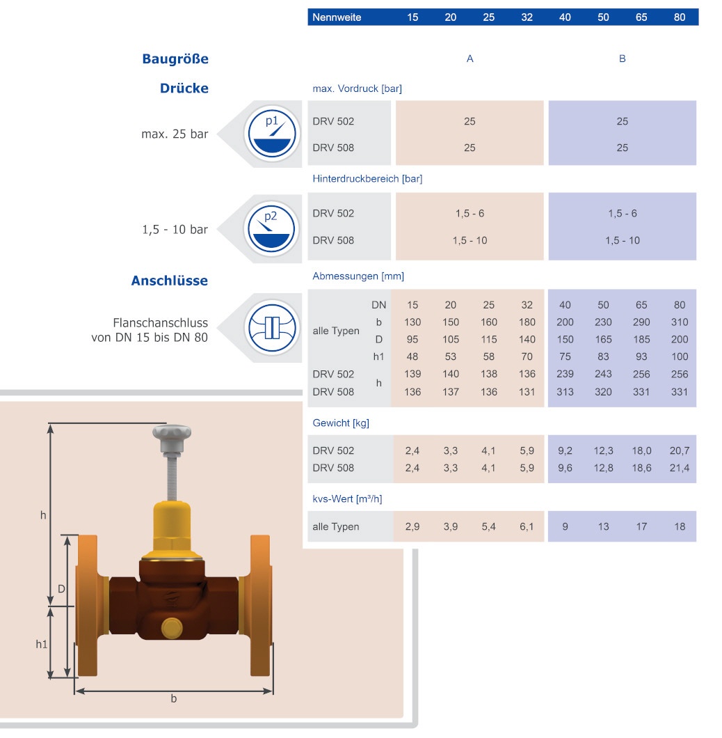 Druckminderer und verfügen über eine Vordruckkompensation. Die Kartuschenkonstruktion erlaubt einen einfachen Austausch der Innenteile.