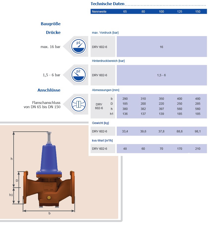 Druckminderer und verfügen über eine Vordruckkompensation. Alle Dichtungen verfügen über ELL und W270 Zulassungen, die metallischen Bauteile entsprechen der UBA Positivliste.