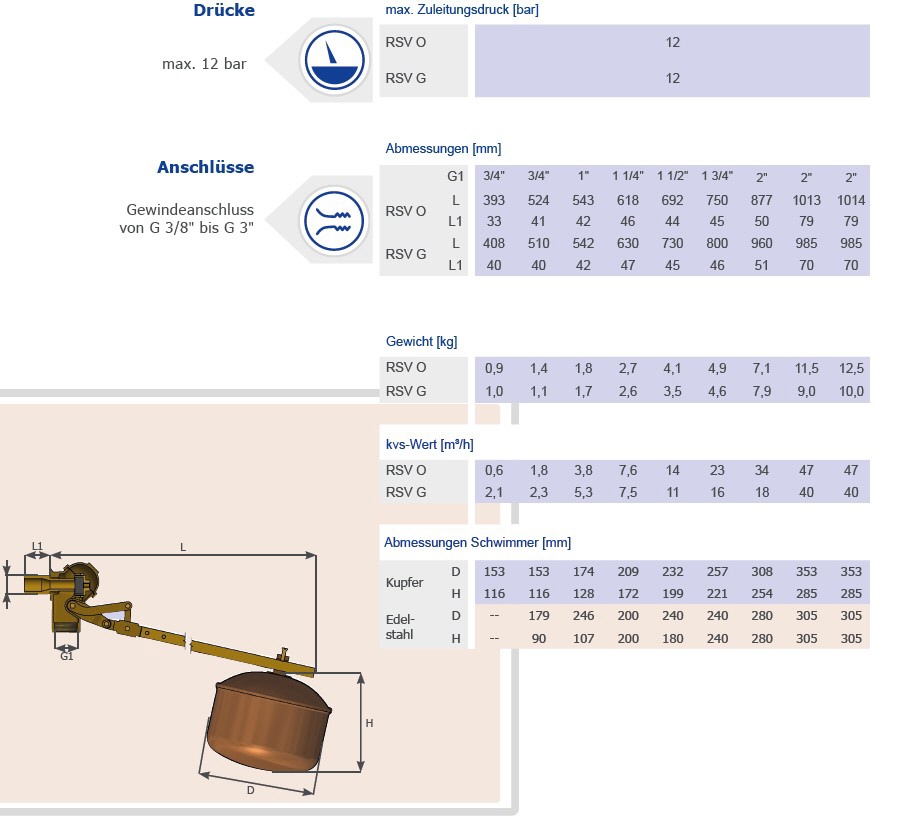 Schwimmerventile der Baureihe eigenen sich hervorragend für die Befüllung von mittleren bis großen Vorratsbehältern bzw. deren Niveauregulierung. Über die Verschiebung des Schwimmers kann ein gewünschter Flüssigkeitsstand exakt eingestellt werden. Die Ventile verfügen über eine hohe Durchflussleistung.